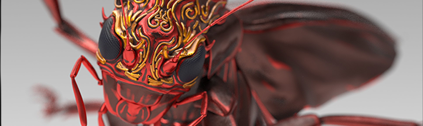 このチュートリアルでは、3ds Max、ZBrushをメインに昆虫をモチーフにしたオリジナルアートのモデリング、テクスチャ、レンダリング、カラコレまでの一連のワークフローに沿って、テクニック、絵作り、スピードアップの方法を解説します。作品を「完成」させるために必要な思考法と、具体的なプロセスを学ぶことができます。